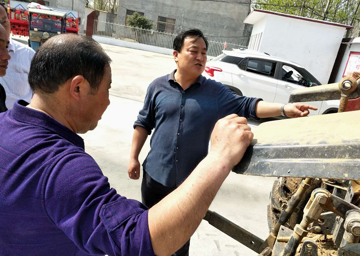 隨后,公司銷(xiāo)售課負(fù)責(zé)人白栓禮向逯亞森主任、張珀副書(shū)記以及拖拉機(jī)手2名詳細(xì)介紹了耕播機(jī)具的安裝、使用情況。
