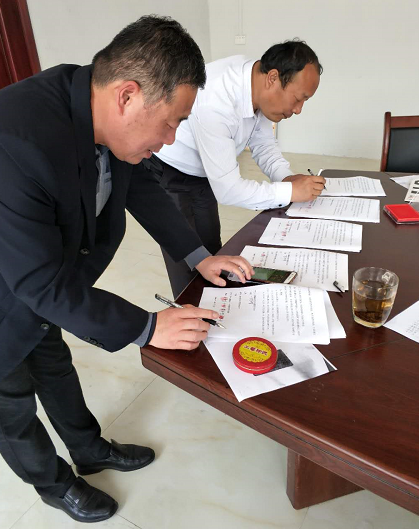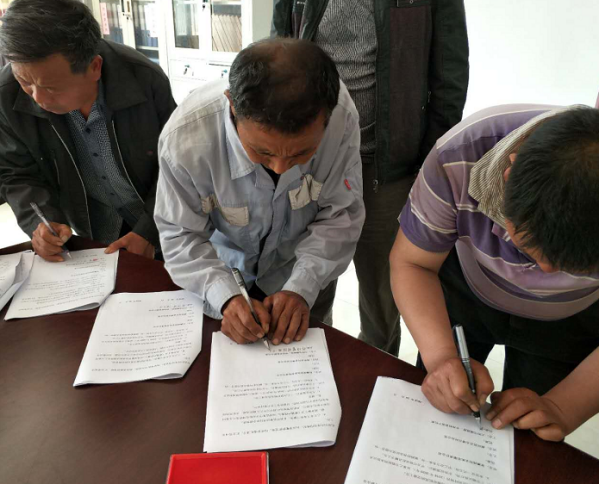 在縣百企辦逯亞森主任、大河屯鎮(zhèn)黨委張珀副書(shū)記、申沖村申慶振主任的見(jiàn)證下,各方與公司共同簽署了相關(guān)協(xié)議,正式將本批物資轉(zhuǎn)交給了申沖村委。