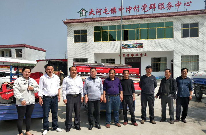 協(xié)議簽署好后,公司郭經(jīng)理、公司工會(huì)主席耿莉莉同縣百企辦逯亞森主任、大河屯鎮(zhèn)張珀副書(shū)記、申沖村申主任以及申沖村拖拉機(jī)手合影。