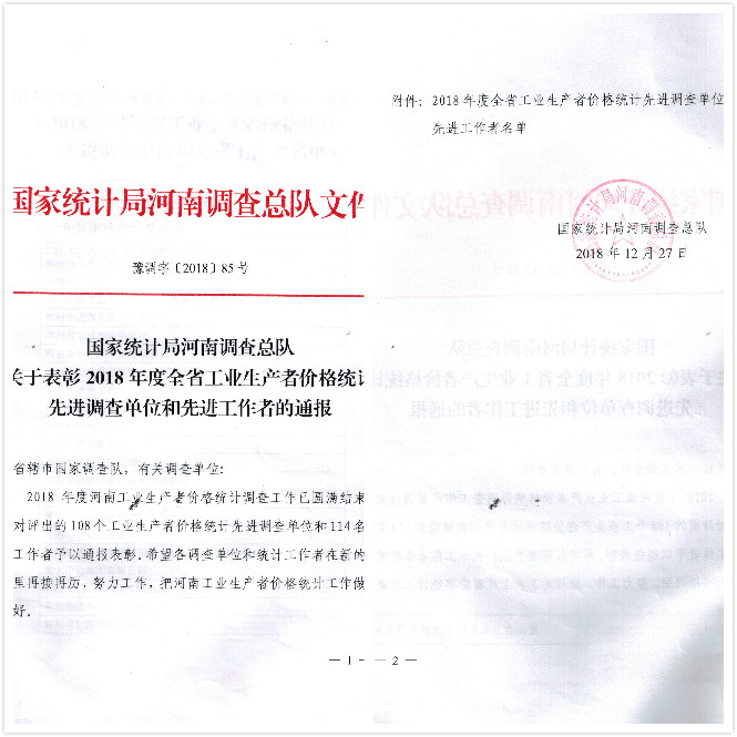 日前,自國家統(tǒng)計局河南調查總隊獲得消息,亞澳農機獲得2018年度全省工業(yè)生產者價格統(tǒng)計先進調查單位。
