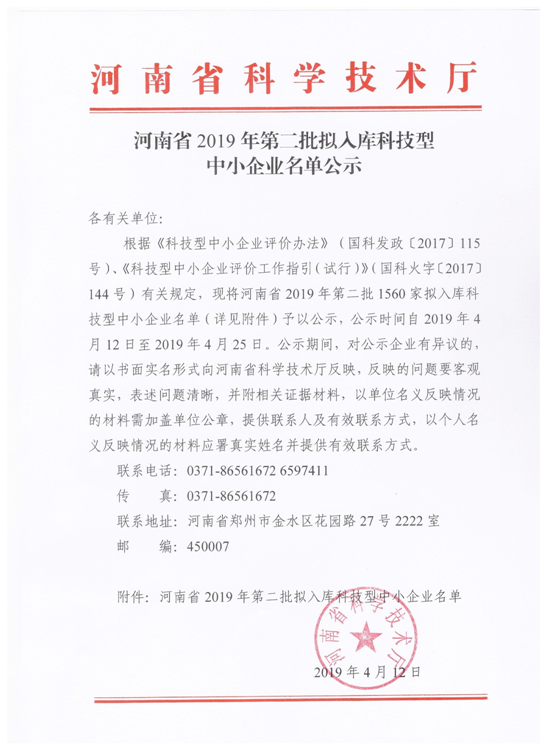 公示.南陽 | 河南省2019年第二批擬入庫科技型中小企業(yè)名單公示