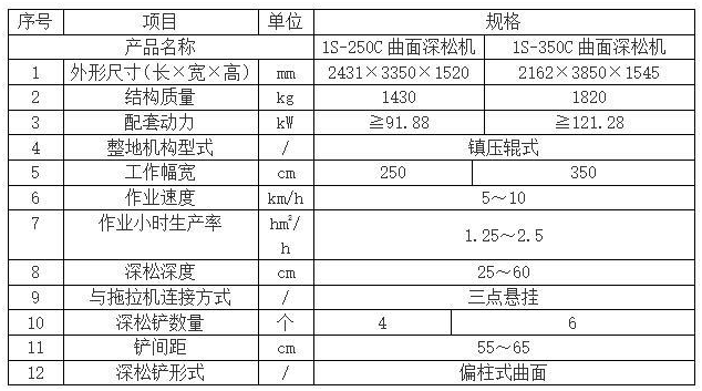產(chǎn)品有1S-250C、1S-300C、1S-350C、1S-400C型曲面深松機(jī),可以與120馬力及以上的拖拉機(jī)配套使用,也可根據(jù)更大拖拉機(jī)馬力特制亞澳產(chǎn)品,目的就是解決用戶(hù)所面臨的深松難題、配套難的難題,亞澳產(chǎn)品在做到達(dá)到深松要求的基礎(chǔ)上,采用更好的材質(zhì),耐久耐勞。