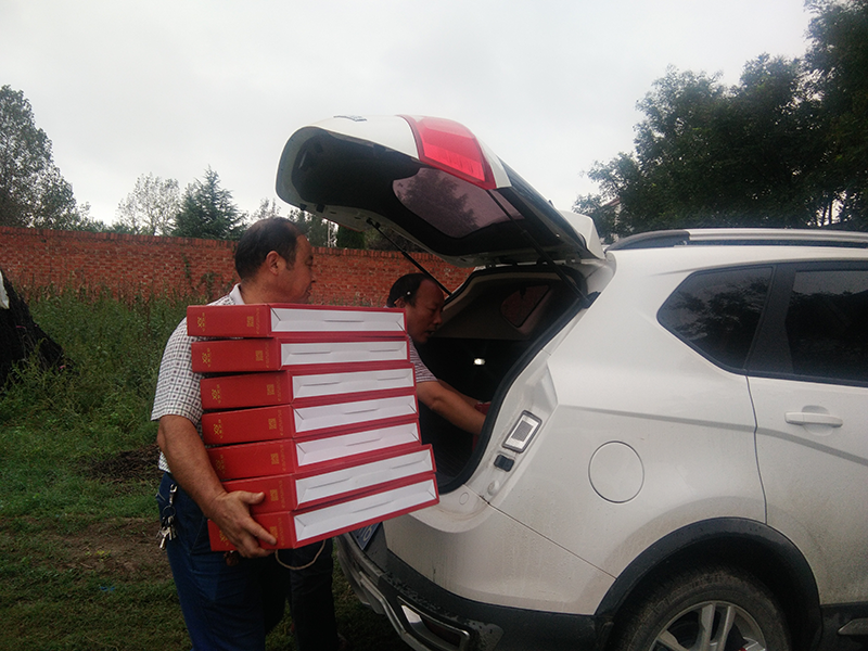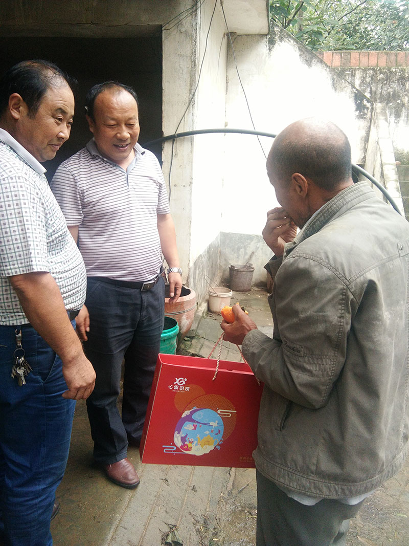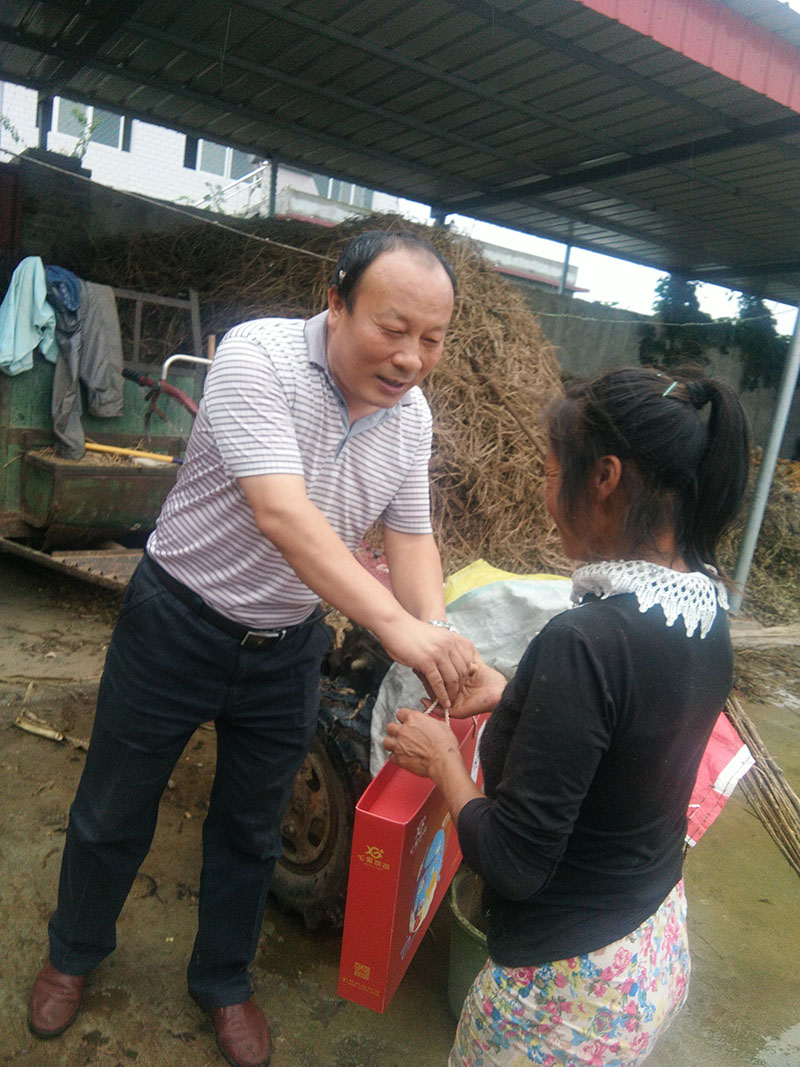 淫雨霏霏,在國(guó)慶、中秋雙節(jié)來臨之前,2017年9月25日下午,亞澳南陽(yáng)農(nóng)機(jī)有限公司總經(jīng)理助理郭靖懷著滿滿的熱情與關(guān)懷,帶著月餅禮盒,再次來到大河屯鎮(zhèn)申沖村開展扶貧慰問工作。